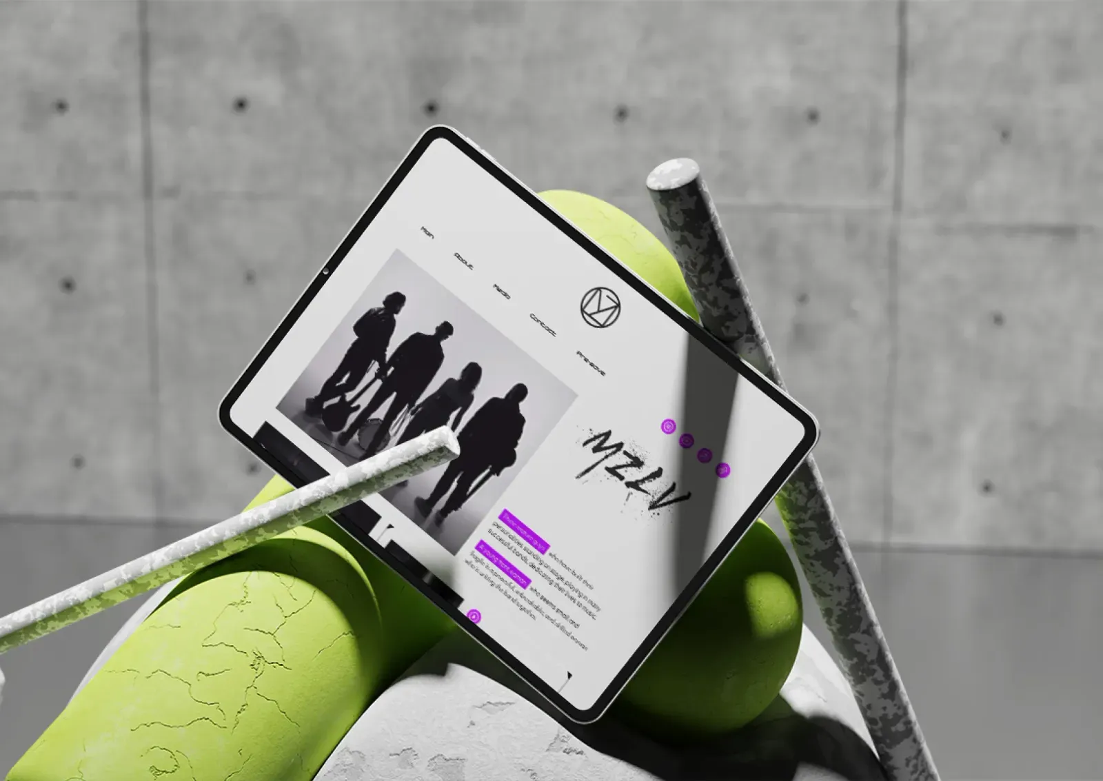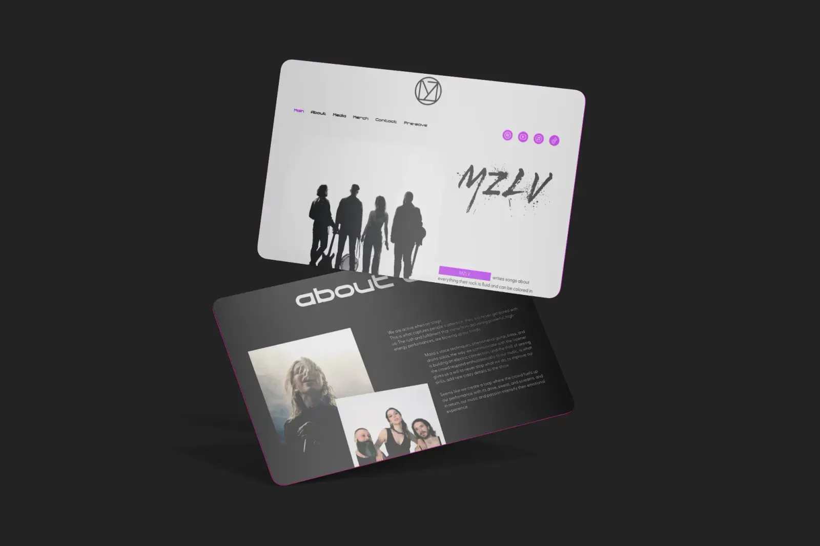 Наше завдання при створенні лендінгу для гурту "Mzlv" було розповісти про гурт, представити учасників, вказати платформи для прослуховування, показати мерч і надати можливість підписки на передрелізи. Важливою частиною завдання було зробити лендинг динамічним з анімацією.